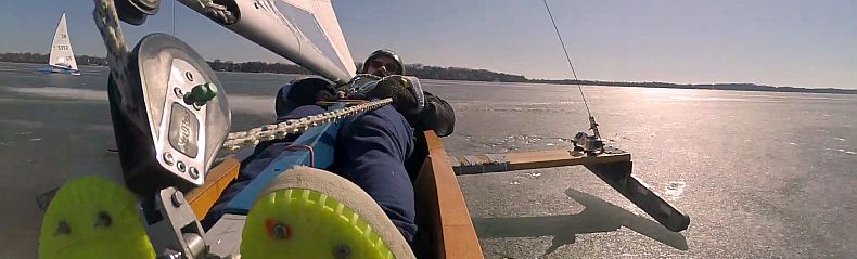 Fast catamaran racing on Lake Mendota.